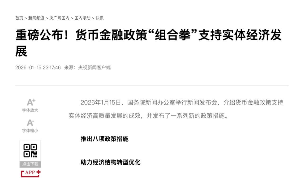 中国的货币政策一直以自身情况为主,不会盲目跟着美国的节奏走。2026年1月明确推出八项货币金融支持政策,核心是助力国内经济复苏。以后如果国内经济有需要,依然有降准、降息的空间,只是节奏会更谨慎,兼顾国内和外部平衡。