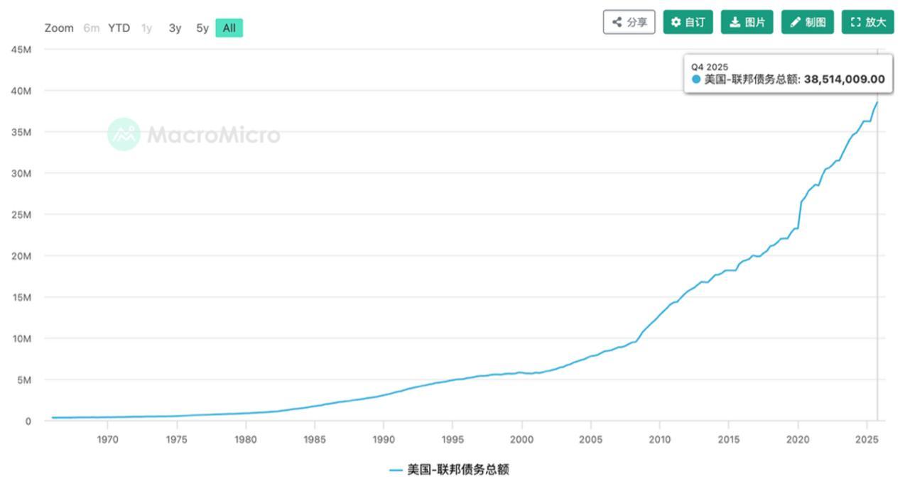 美国债务总额,数据来源:MacroMicro