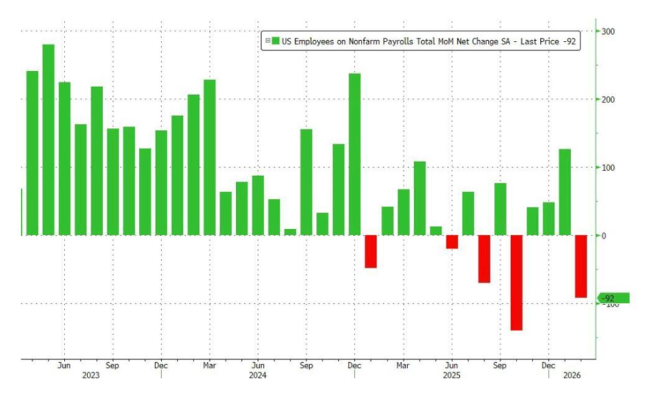 先看负非农带来的连锁麻烦。3月6日美国劳工部发布的数据显示,2月非农就业人数减少9.2万人,远低于市场预期的新增5-6万人。